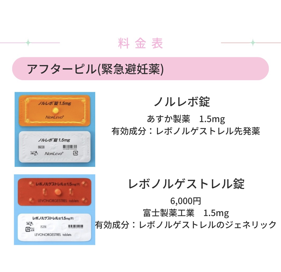 オンライン処方薬(アフターピル、低用量ピル)の場合