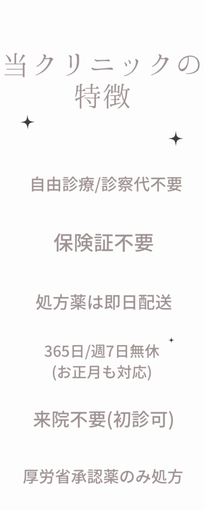 診察終了後、直ちに商品を発送します。診察時間により翌日発送となる場合があります。